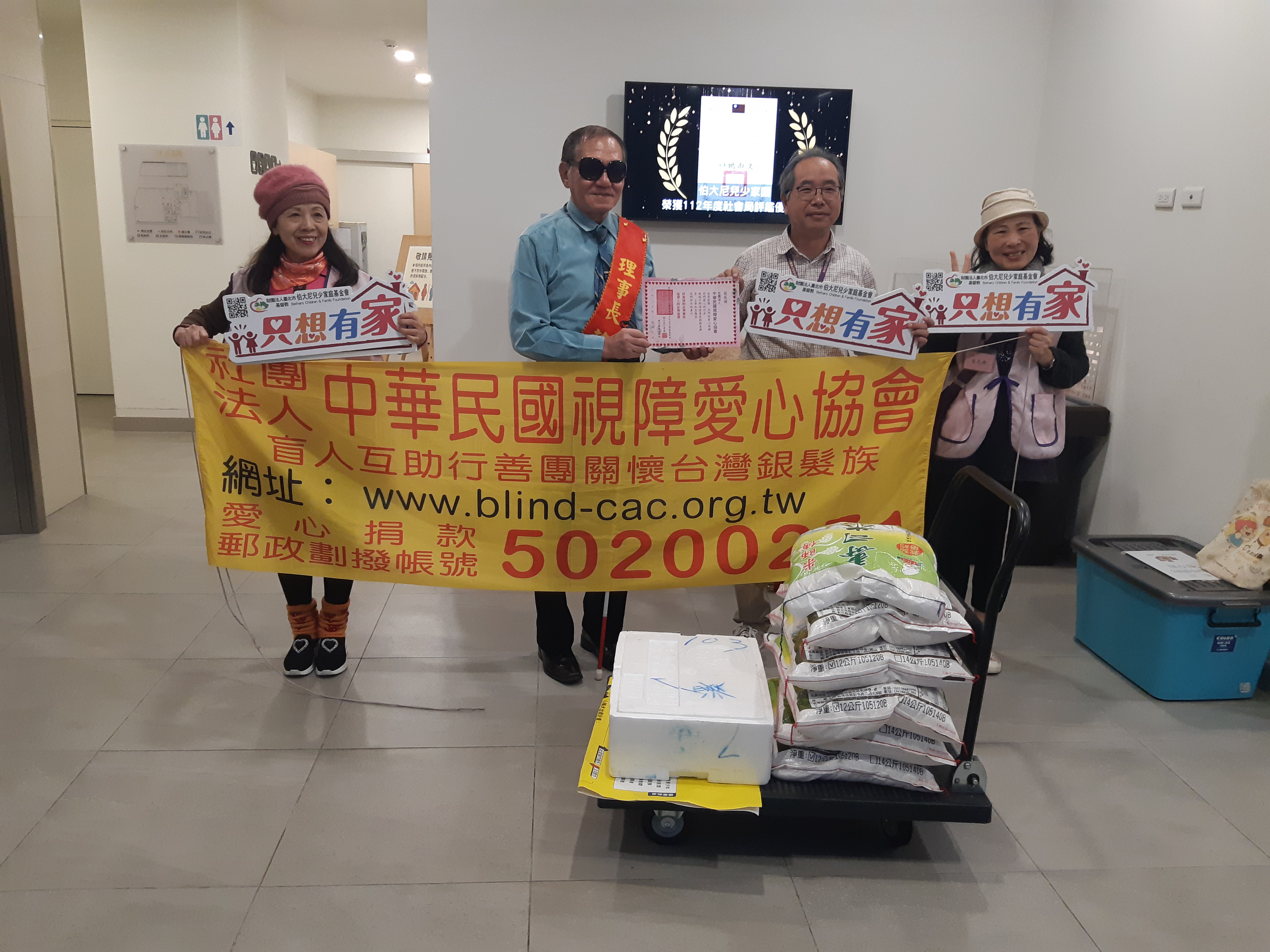 119日下午,前往伯大尼兒少家園贈送物資,由特助廖憶銘先生代表受領白米120斤等物資。廖特助也頒贈感謝狀給蘇理事長。