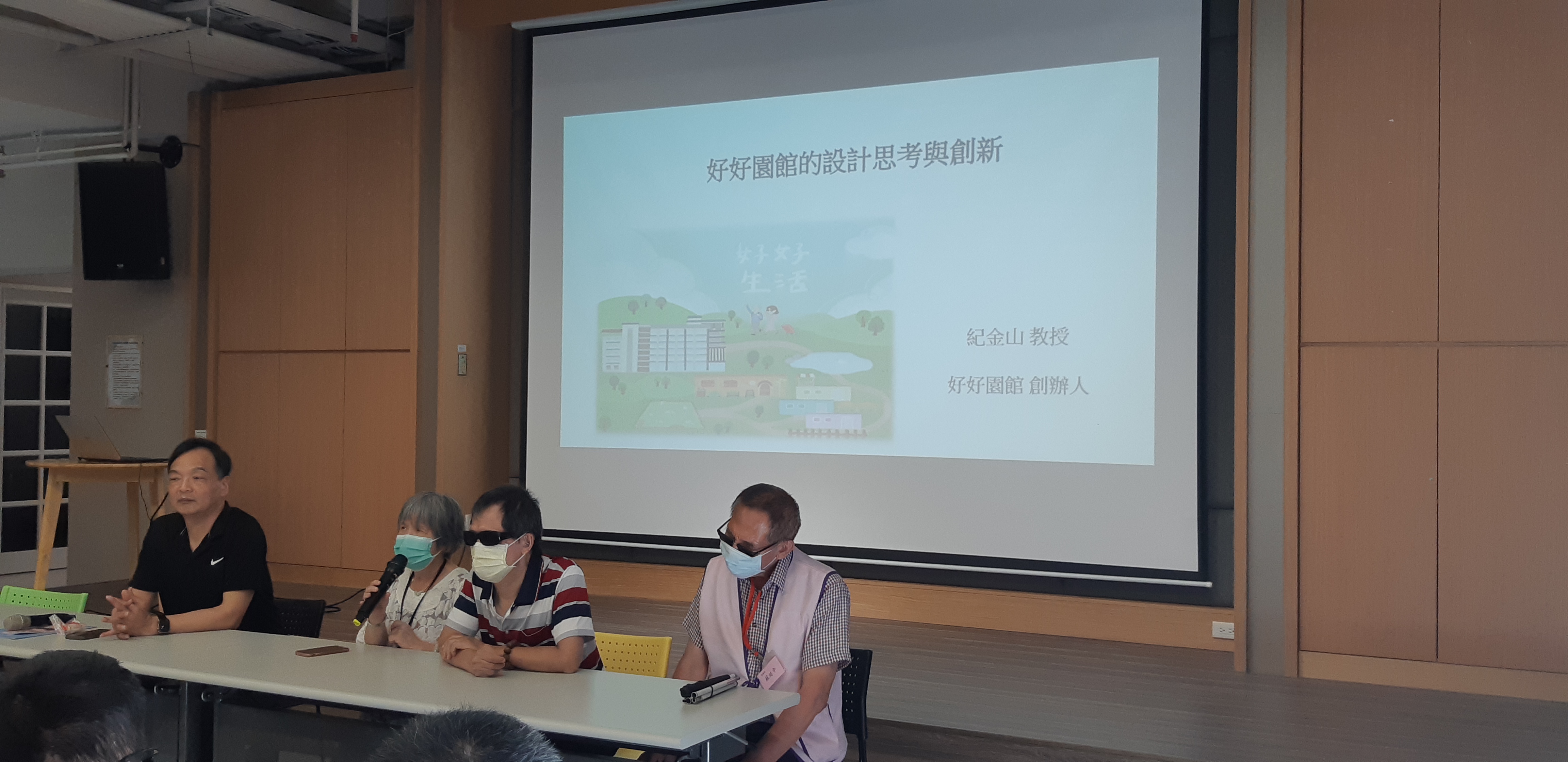 好好園館創辦人紀金山教授與盲人重建院退休的柯老師與陳老師,分享目前的現況與生活情形。